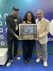 “Sabotage continua sendo a voz das periferias. Essa homenagem é muito representativa, materializa o grande artista que ele foi e o legado que deixou no rap”, conta Tamires Rocha, filha do Sabotage. Ela e o irmão, Wanderson Mateus, o Sabotinha, receberam das mãos de Roberto Corrêa de Mello, CEO da Abramus, o quadro homenageando a trajetória de Sabotage na música.