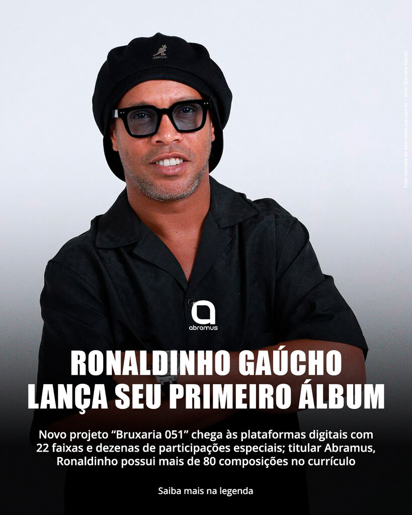Mundialmente reconhecido por sua genialidade nos gramados, o ídolo brasileiro e titular da Abramus, Ronaldinho Gaúcho, consolida agora sua presença na cena artística com o lançamento de seu aguardado álbum “Bruxaria 051”.