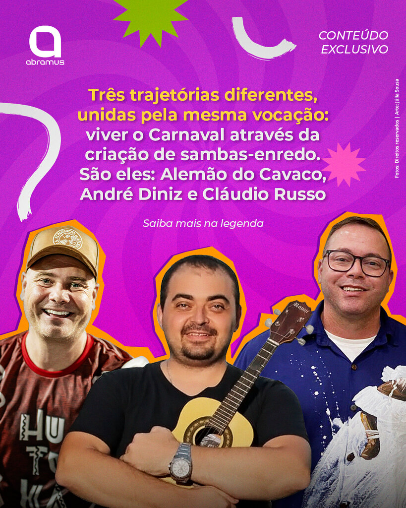 É nesse território, entre criação e disputa, que atuam Cláudio Russo, Alemão do Cavaco e André Diniz. Três trajetórias diferentes, atravessadas pela mesma experiência: a de viver o Carnaval a partir da composição.