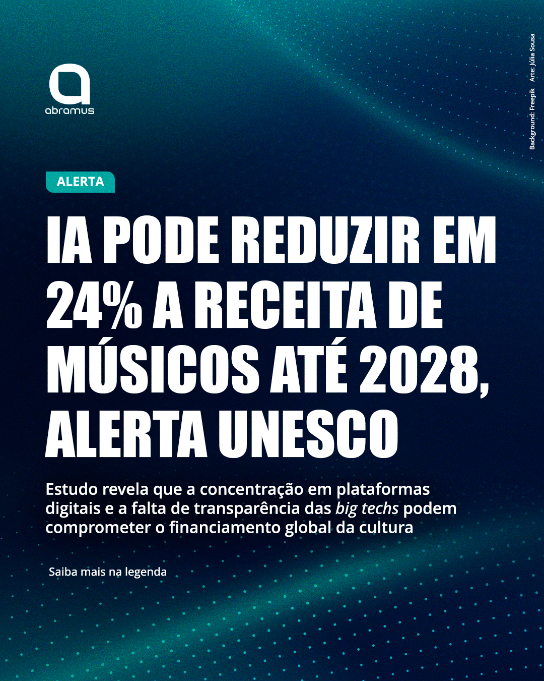 Novo relatório da UNESCO, Intitulado Re|thinking Policies for Creativity – Repensando as Políticas para a Criatividade –, projeta que, até 2028, a expansão da inteligência artificial generativa pode reduzir as receitas globais dos músicos em até 24% e do setor audiovisual em cerca de 21%.