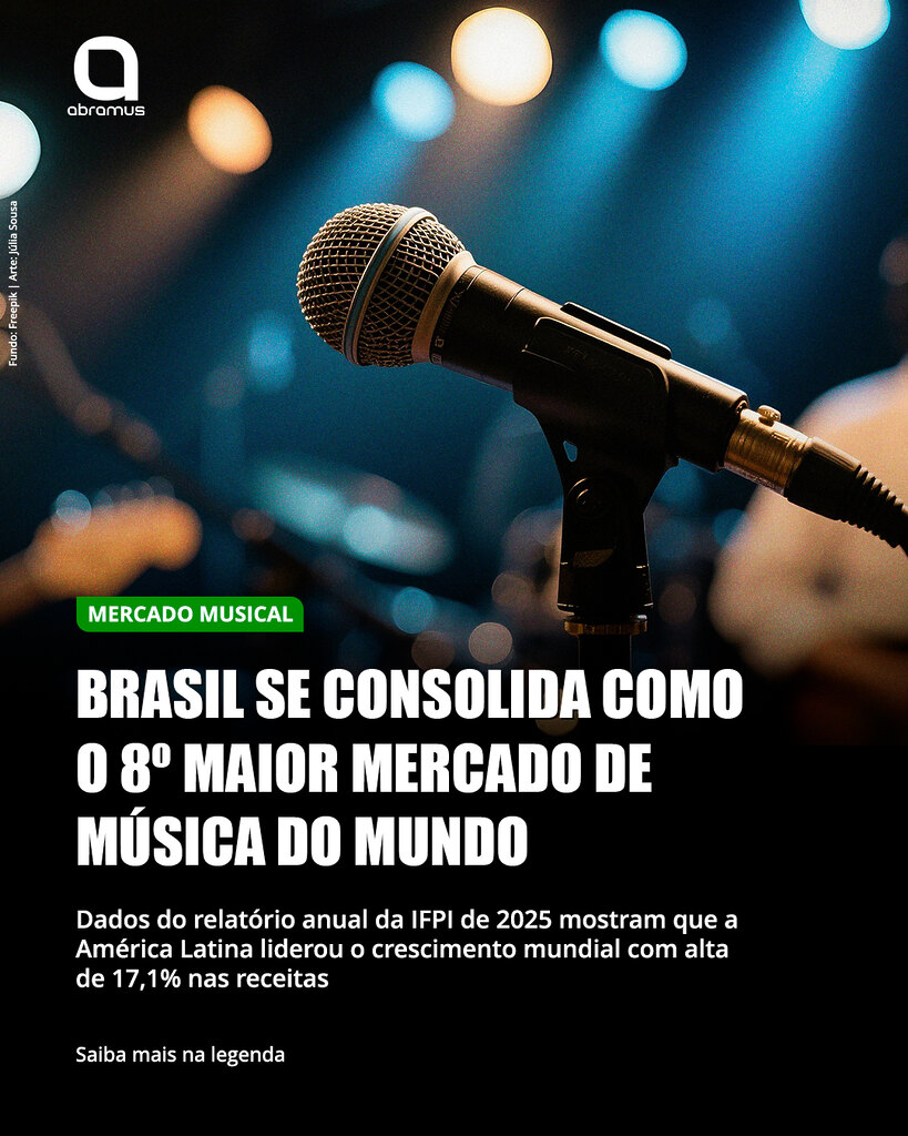 De acordo com o relatório anual da IFPI 2025, o Brasil consolidou sua posição como o 8º maior mercado de música do mundo.