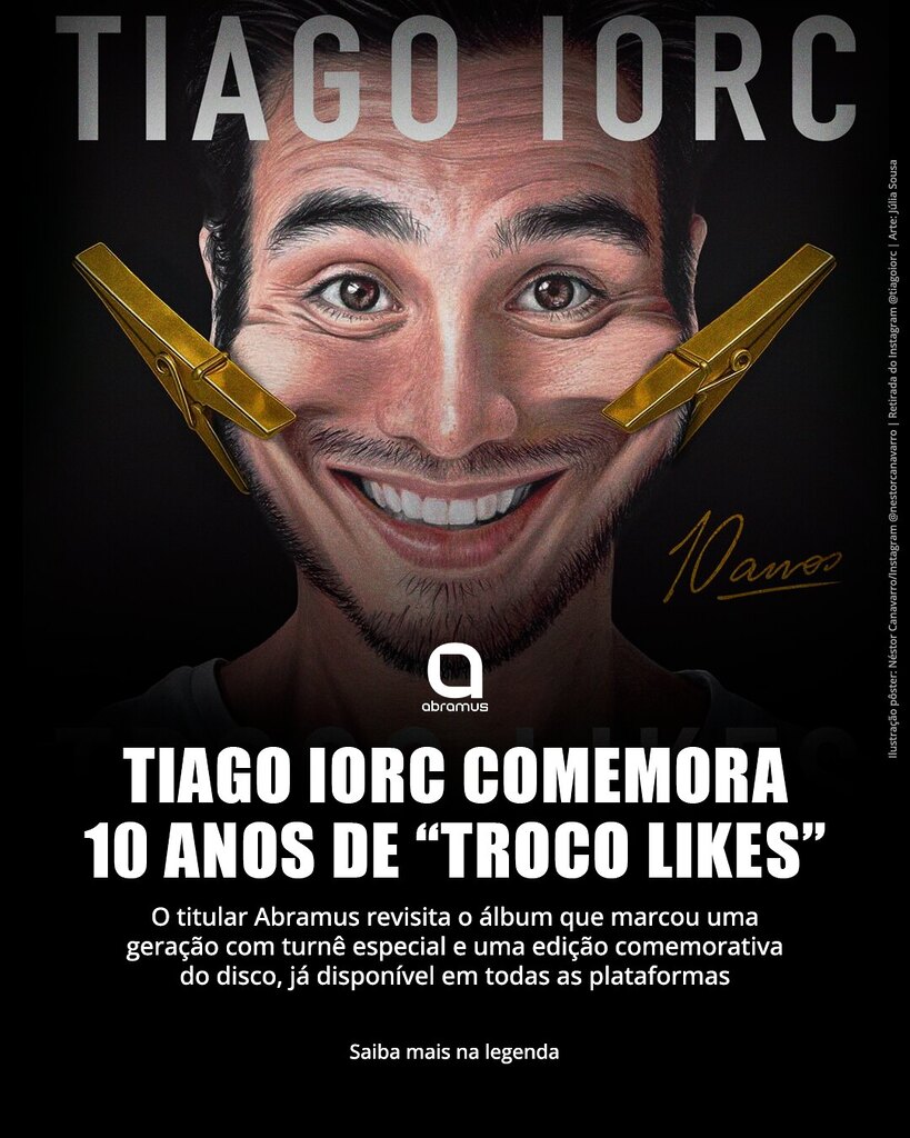 Para celebrar uma década do lançamento de “Troco Likes”, Tiago Iorc, titular Abramus, anunciou uma série de comemorações à altura desse sucesso. O projeto que consolidou o artista com sucessos como “Amei Te Ver” e “Coisa Linda”, ganha uma turnê especial que percorrerá dez cidades brasileiras, começando por São Paulo no dia 1º de agosto.
