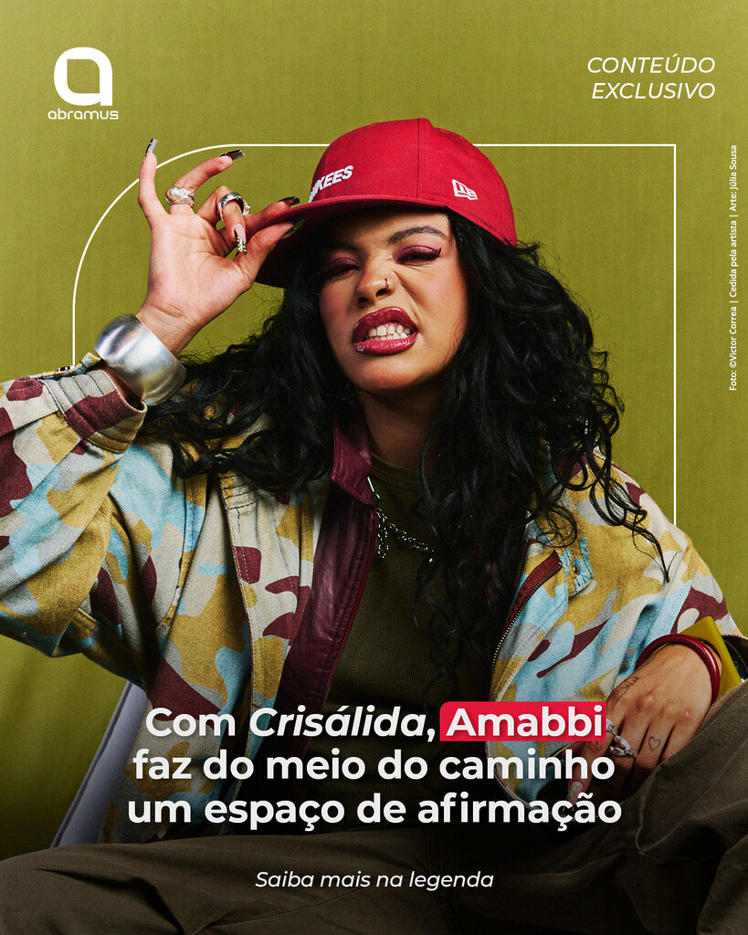 Com Crisálida, Amabbi, titular Abramus, demonstrou sua busca por substância e autenticidade, reafirmando que não quer ser apenas mais um nome passageiro. Lançado em março, o álbum consolidou sua presença e reforçou a autenticidade que marca sua trajetória, revelando uma identidade construída com intenção e sensibilidade. Mais do que acompanhar movimentos do mercado, ela segue um caminho próprio, guiado por expressão e consistência.